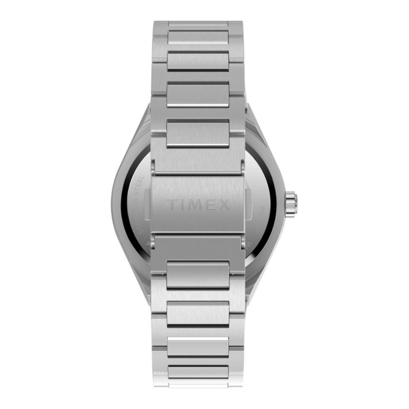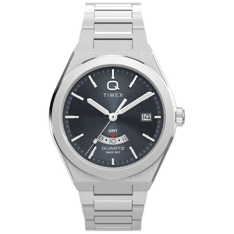 Relógio Q Timex Continental GMT traz um toque de refinamento à coleção Q Timex com sua caixa de aço escovado de 39 mm, combinando designs arrojados dos anos 70 com um estilo vintage. Seu mostrador preto apresenta uma textura radial, marcadores de horas facetados, ponteiros luminosos para visibilidade no escuro e calendário. A função GMT, discretamente exibida às 6 horas, permite rastrear um segundo fuso horário. Completa o visual com uma pulseira cônica integrada em aço escovado, ajustável para maior conforto.