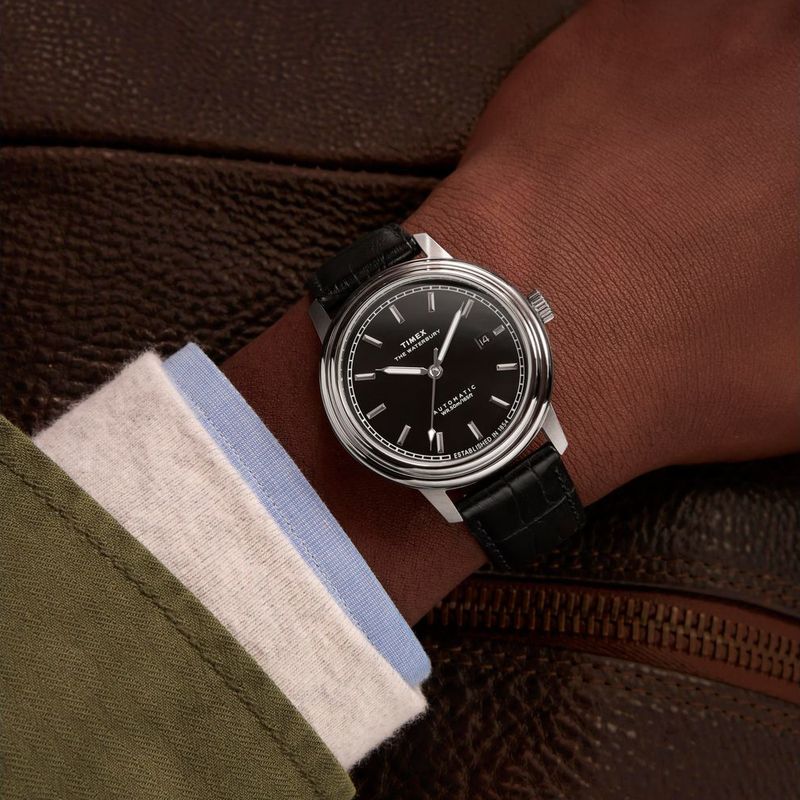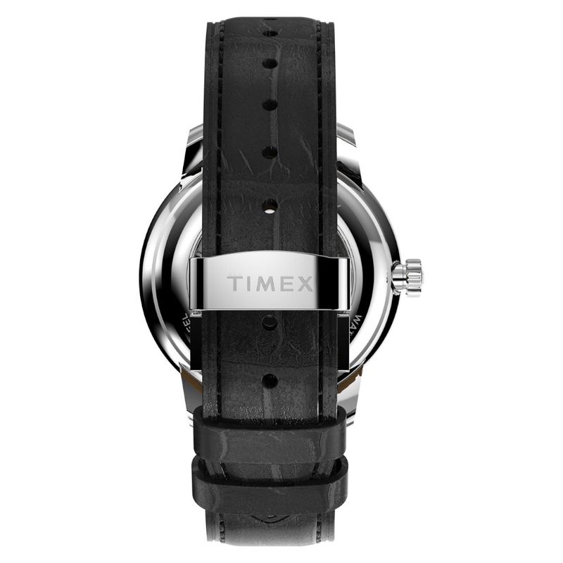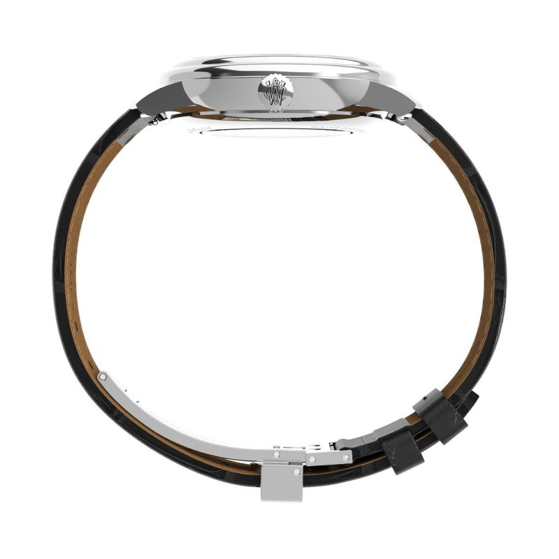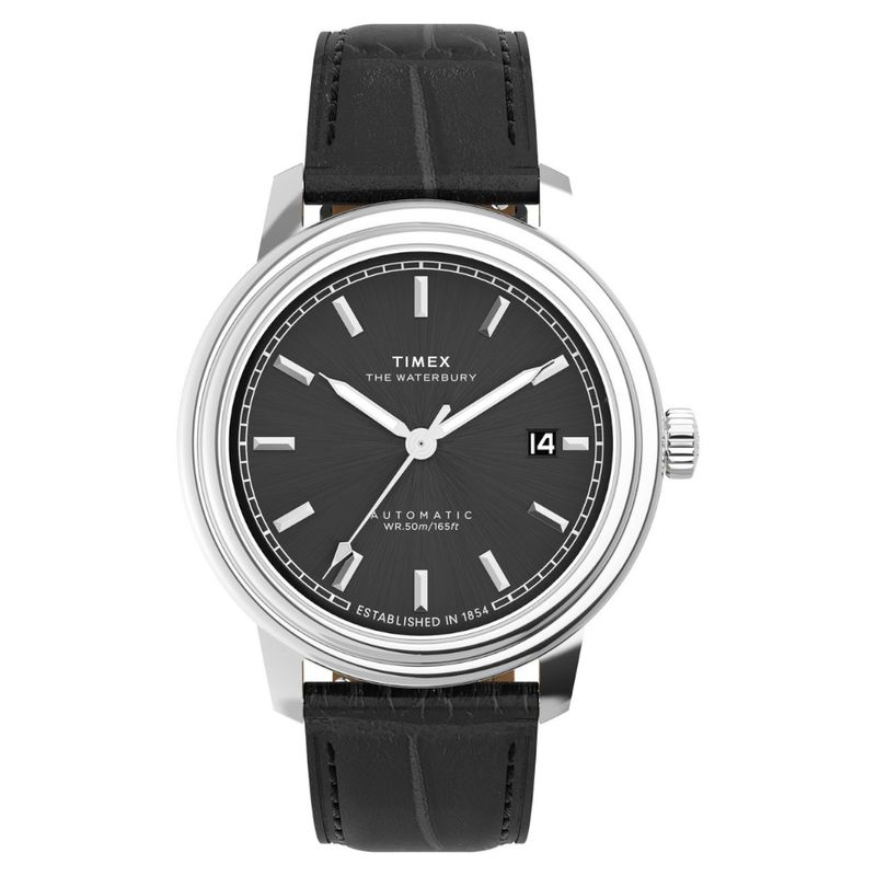 Relógio Automático Waterbury Metropolitan possui uma caixa de aço de 41 mm, resistente à corrosão e luneta de duas camadas. O mostrador prateado claro, com marcadores chanfrados e trilho, possui calendário. O movimento automático japonês de 21 joias, dispensa bateria e é alimentado pelo movimento do usuário. Sua pulseira de couro natural preto, apresenta grão de crocodilo e fecho deployant, garantindo durabilidade e conforto.