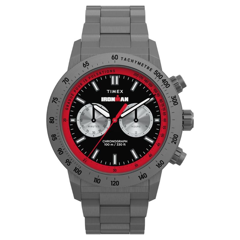 O relógio Cronógrafo Timex Ironman Challenger alia alto desempenho e design esportivo, trazendo um display analógico para a icônica linha Ironman®. Seu mostrador com detalhes em vermelho vibrante, conta com um cronógrafo de 24 horas com pulsômetro, permitindo que o ponteiro central funcione em conjunto com a trilha externa de minutos para medir a frequência cardíaca com precisão. Mantendo sua herança francesa, a escala do pulsômetro exibe rotulagem no idioma original. A caixa de aço inoxidável escovado garante resistência à corrosão e ao desgaste diário, enquanto os ponteiros e marcadores luminosos oferecem visibilidade aprimorada em ambientes com pouca luz.