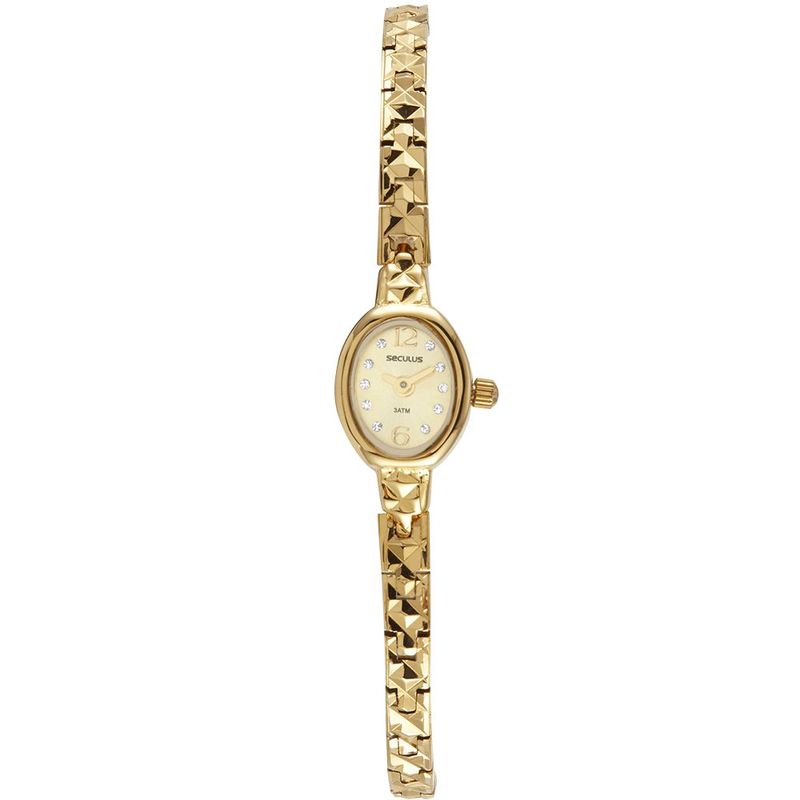 Um modelo clássico, ideal para ocasiões especiais como festas! Esse relógio além do mecanismos analógico, possui micromovimento e é sinônimo de delicadeza e sofisticação! A pulseira fina com acabamento trabalhada e o mostrador com cristais, torma a peça ainda mais charmosa. Esse relógio possui a caixa em 1,4 cm de tamanho.