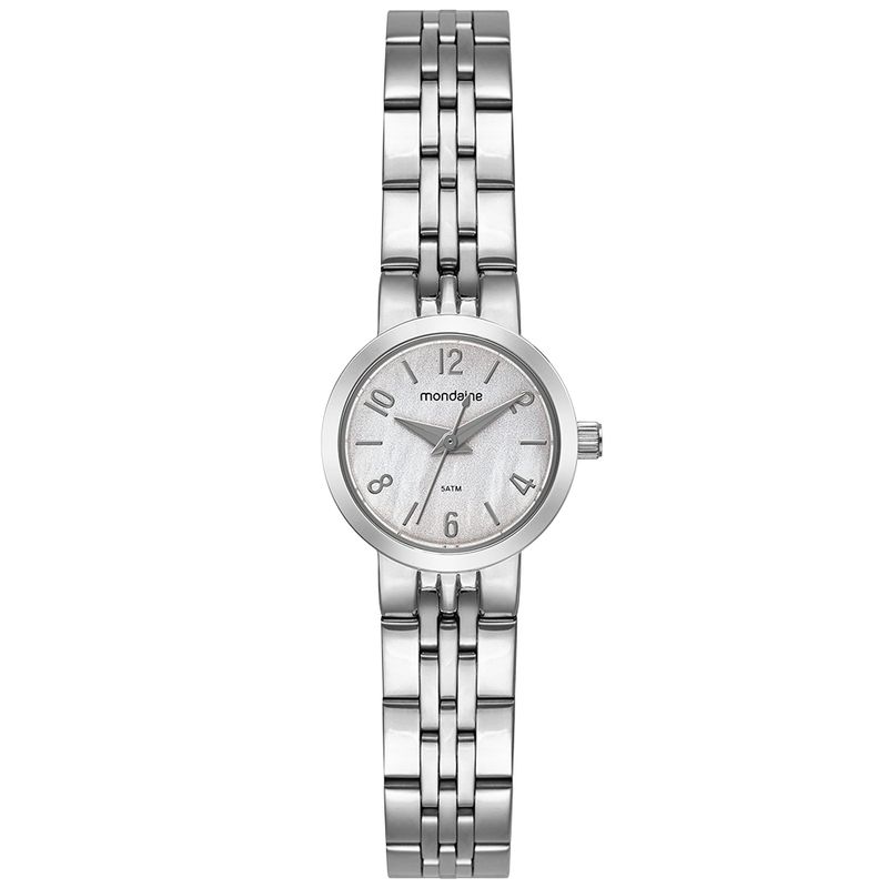 Relógio feminino Mondaine com um design clássico, perfeito para quem aprecia sofisticação e delicadeza. A caixa redonda de 23 mm em metal cromado traz um acabamento elegante, ideal para pulsos pequenos, proporcionando um toque refinado.