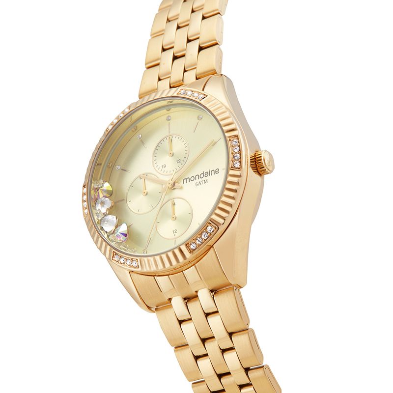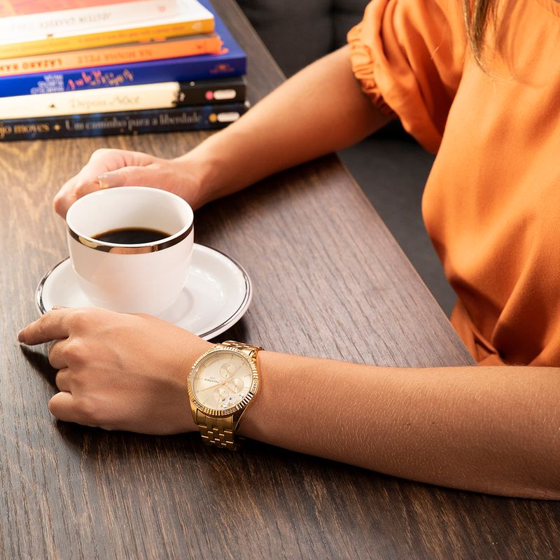 Ideal para mulheres que apreciam acessórios femininos e com múltiplas funções. Um relógio que une charme e utilidade em um design Dourado.
