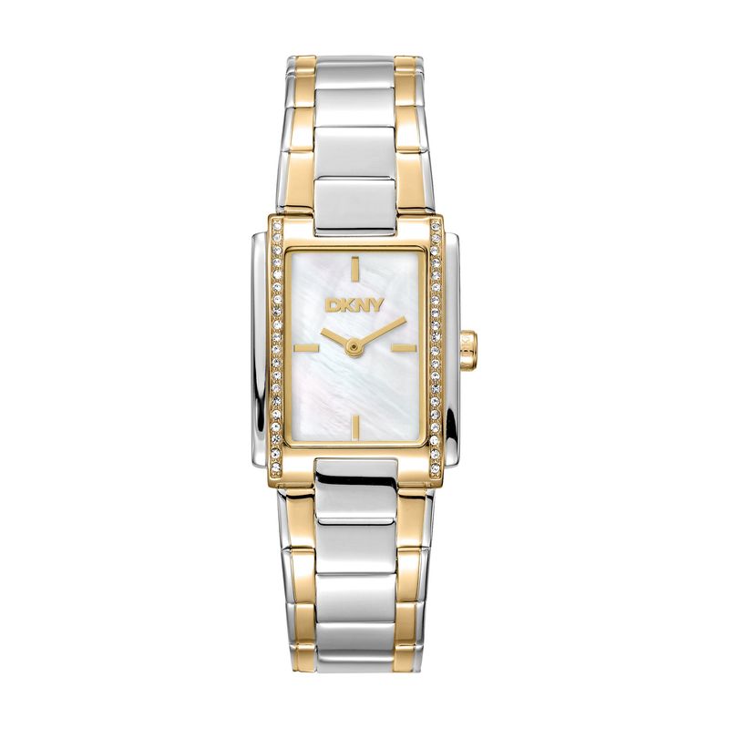 O Relógio Feminino DKNY Astoria combina a versatilidade do aço bicolor com a beleza singular da madrepérola. A caixa de 23mm com formato diferenciado, mesclando prata e dourado, emoldura elegantemente o mostrador. Os reflexos naturais da madrepérola tornam cada peça única e adicionam um toque de luxo.