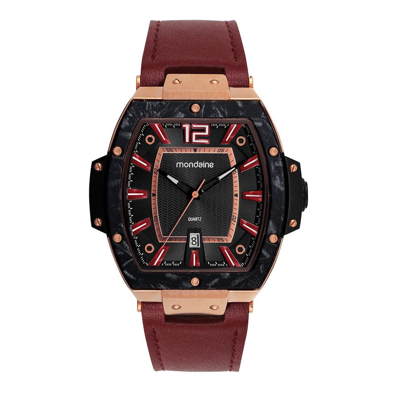 O Relógio Feminino Mondaine destaca-se por sua combinação de cores ousada e cheia de estilo. A caixa oval de 42mm em metal vermelho cria um visual vibrante, que contrasta com o mostrador preto. A função de calendário e os marcadores numéricos e de index tornam o relógio prático e de fácil leitura.
