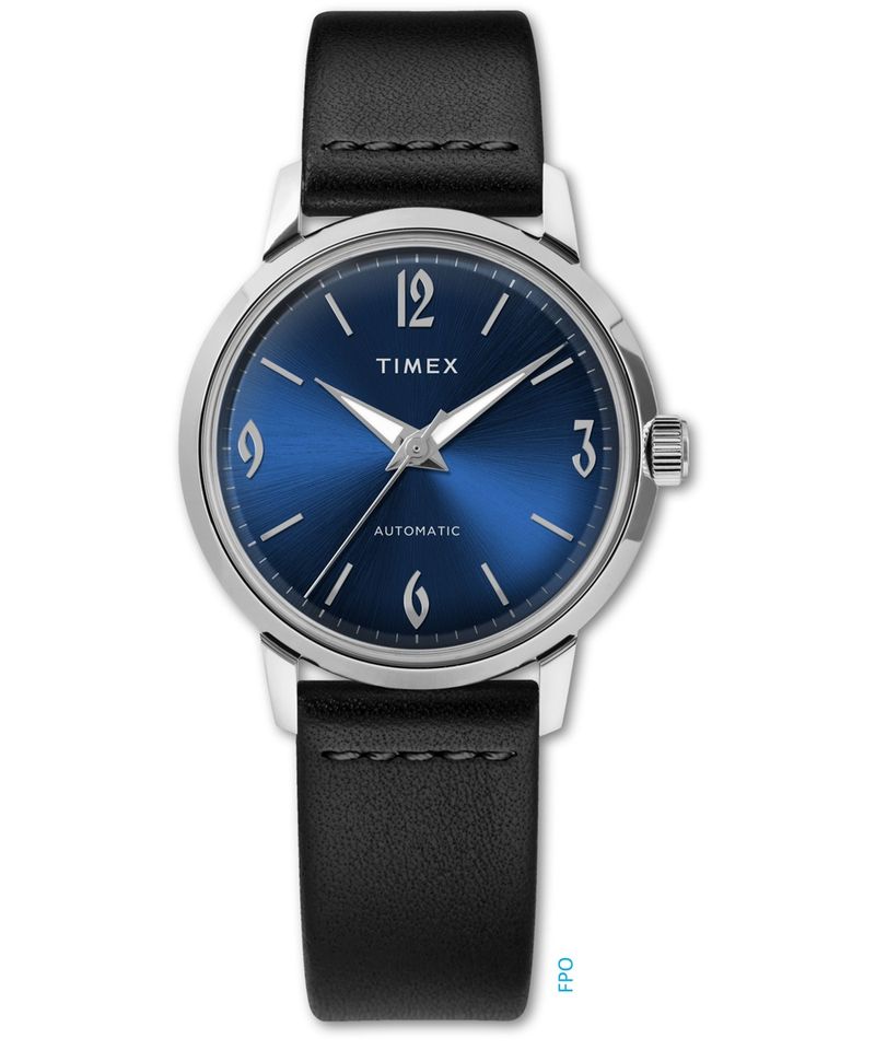 O modelo Marlin Automatico traz de volta o icônico design dos anos 60 em uma versão atualizada, combinando estilo retrô com engenharia moderna. Sua robusta caixa de 40 mm em aço abriga um mostrador azul sunray, com ponteiros e marcações que remetem ao clássico Marlin. O relógio tem um movimento automático japonês de 21 joias, alimentado pelo movimento natural do pulso, com reserva de energia de até 40 horas. Se permanecer parado por mais tempo, basta dar corda manualmente pela coroa até sentir resistência e ajustá-lo novamente. O conjunto é protegido por um cristal acrílico abaulado, que reforça o visual vintage. A pulseira de couro natural preto, macia e flexível, possui certificação do Leather Working Group (LWG), evidenciando o compromisso com a produção sustentável. Para maior praticidade, conta com sistema de barras de mola de liberação rápida, permitindo a troca fácil da pulseira sem necessidade de ferramentas.