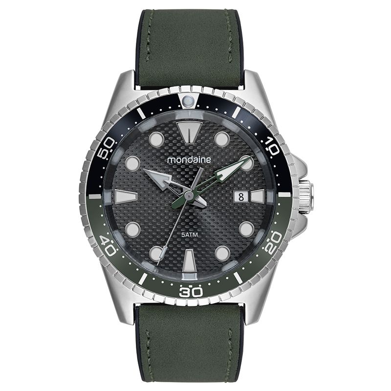 A pulseira em silicone verde oferece conforto e resistência, ideal para o uso diário. O relógio ainda conta com função analógica com calendário e resistência à água de 5 ATM, sendo uma excelente escolha para quem busca um modelo versátil e funcional.