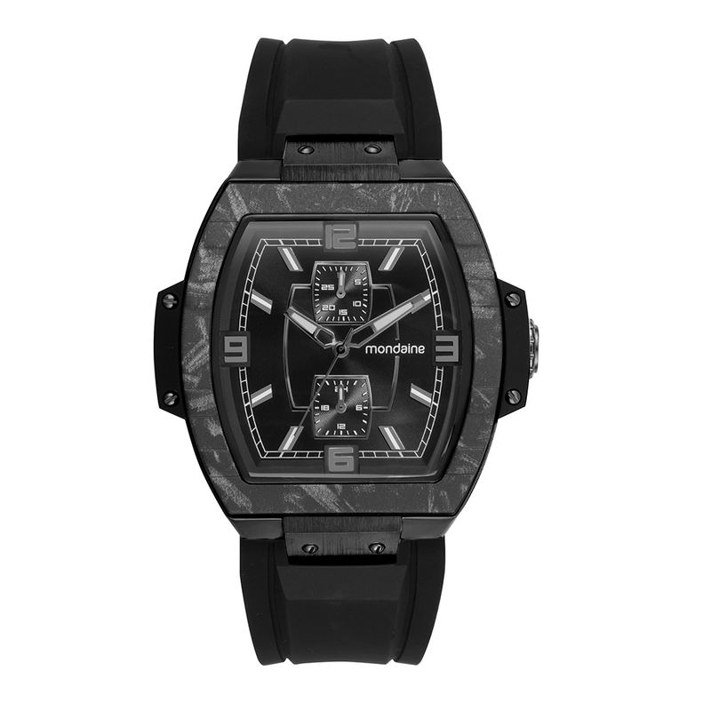 Este relógio masculino Mondaine traz caixa oval de 42x56mm, com acabamento em preto. O mostrador multifunção exibe números e index completos, oferecendo clareza e sofisticação.