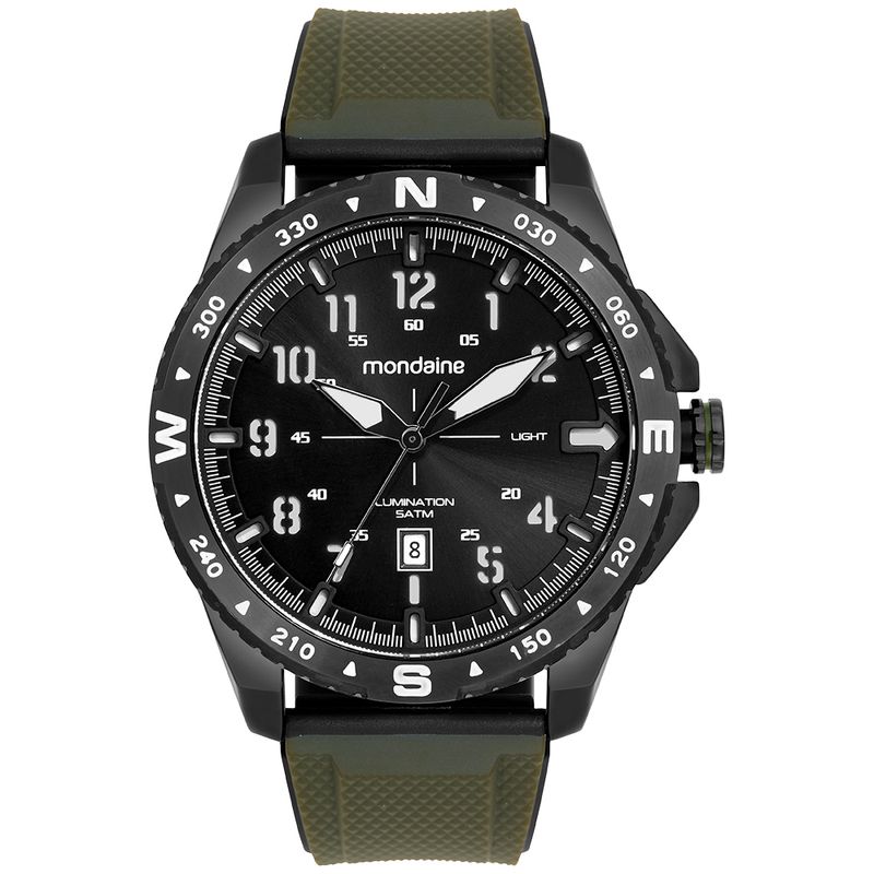 Este relógio masculino Mondaine combina estilo moderno com alta funcionalidade, ideal para o dia a dia. A caixa de metal preta com detalhes em cinza mede 48mm, oferecendo presença marcante no pulso.