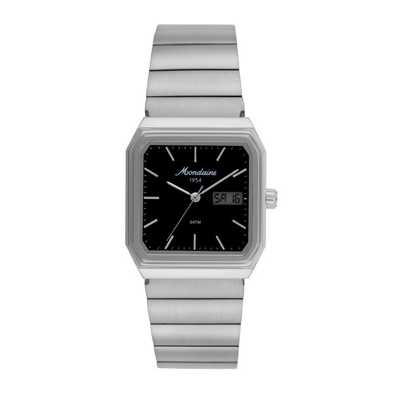 A Mondaine apresenta a Linha 1954, uma coleção que homenageia sua tradição em criar relógios que unem elegância e inovação. O modelo Prata traz caixa em aço no formato quadrado de 30x35mm, combinando mostrador analógico e digital para oferecer praticidade e estilo em qualquer ocasião. Seu design refinado é ideal para homens que apreciam acessórios atemporais e sofisticados.